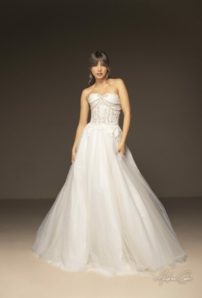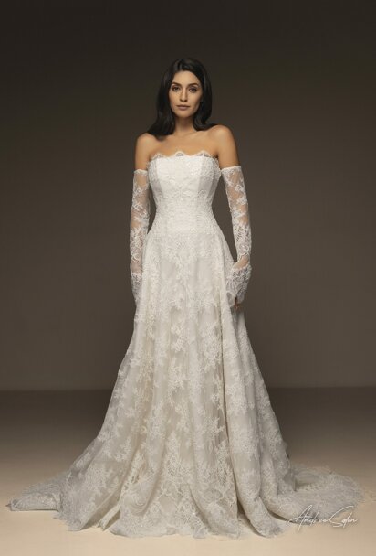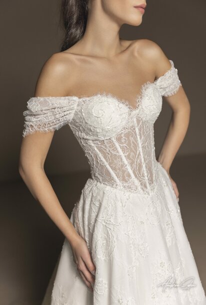Precious and sparkling materials, lace, hand-stitched embroidery and semi-precious stones that render the absolute brilliance, are the basic components to create the image of a true Empress.